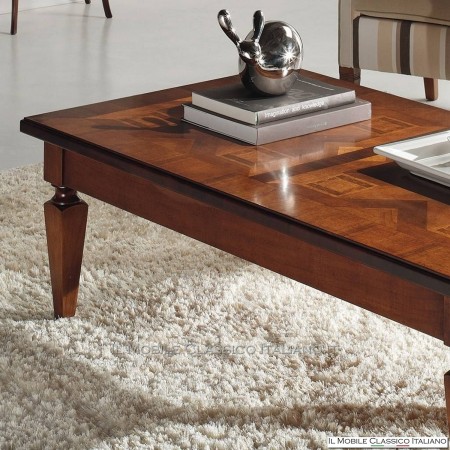 Dieser Couchtisch zeichnet sich wie alle Elemente der Kollektion durch die Verwendung von Intarsien und Dornen mit Edelhölzern aus, um Ihre Möbel harmonisch zu vervollständigen und eine einladende Atmosphäre zu schaffen. Die verschiedenen Holzdekore, Lackfarben, Bezugsstoffe und Polsterungen können ganz nach Ihren Wünschen ausgewählt werden.