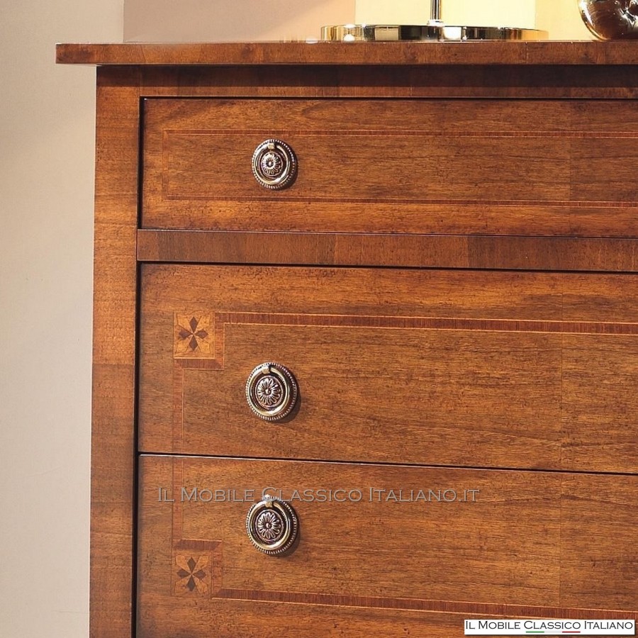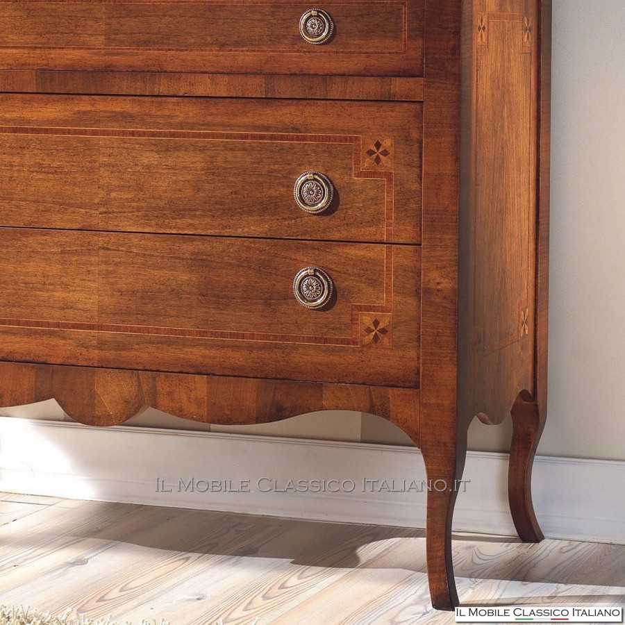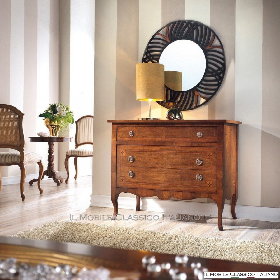 Diese Flurmöbel sind , wie alle Elemente der Dolce casa -Kollektion, eine Sammlung verschiedener Stilmöbel , um Ihre Einrichtung harmonisch zu vervollständigen und eine warme und einladende Atmosphäre zu schaffen. Das Hauptmerkmal dieser klassischen Möbel ist die Komplexität der Konstruktion, tatsächlich sind viele dieser Möbel abgerundet, geformt oder geschnitzt. Sie haben Seiten mit Paneelen, die in eine oder zwei Richtungen gebogen sind. Auf die Oberflächen werden Intarsien aus seltenen und kostbaren Essenzen wie nationaler Nussbaum, Walnussfeder, Bois de Rose, Palisander, Ahorn, Olive, Bois de Violette, Zebrano- oder Eschenmaser, Eiche, Walnuss, Myrte, persischer Nussbaum, Olive aufgebracht Baum. Die Verarbeitung dieser klassischen Möbel erfordert viel Geschick und Erfahrung.