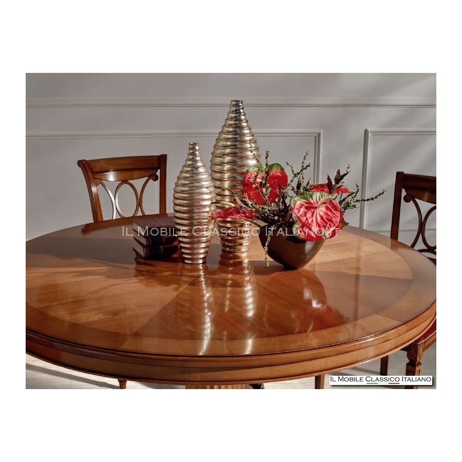 Diese Art von rundem Tisch hat eine feste Größe, ist nicht erweiterbar und wird von unseren Handwerkern in Italien handgefertigt.