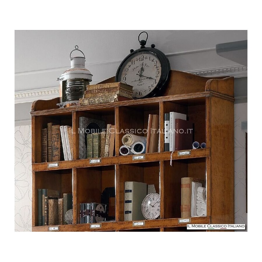 Dieses große Verzeichnis-Bücherregal besteht aus 16 offenen Fächern. Die Hüften sind geschlossen. Die Struktur ist vollständig aus Massivholz. Der offene Bücherregalschrank ist in der Lage, Eleganz und Funktionalität perfekt in einer einzigen Lösung zu vereinen, da er als Etagere oder als Aussteller verwendet werden kann.