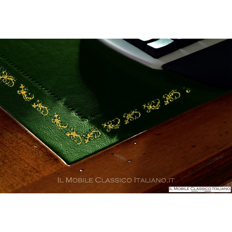 Schreibtisch mit 5 Schubladen und Ledereinsatz, der von unseren Handwerkern in Italien hergestellt wurde, indem alle verschiedenen Essenzen sorgfältig ausgewählt und versucht wurden, die Tradition des Möbelbaus wiederzubeleben.