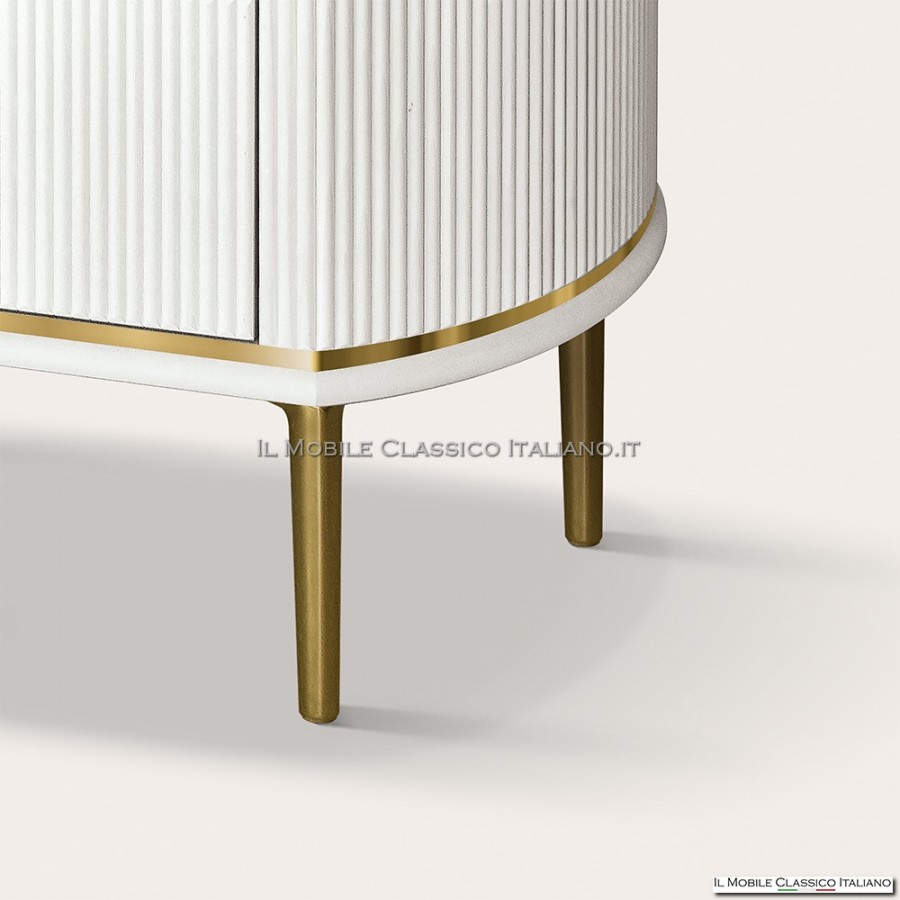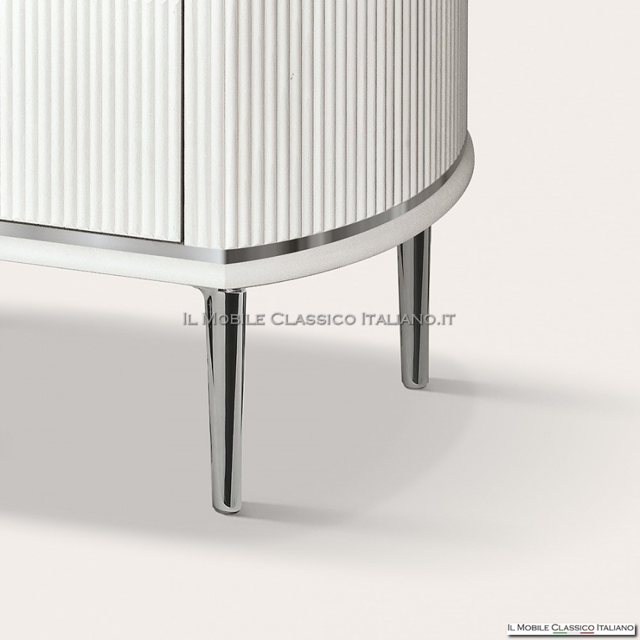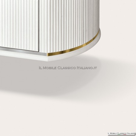 Handgefertigt in Italien, besticht dieses Sideboard durch seine gerillten Türen, die mit Licht und Bewegung spielen und so eine raffinierte, moderne Wirkung erzeugen. Mit den Maßen (B 157 × T 50 × H 85 cm) ist es eine praktische Lösung ohne Kompromisse bei der Eleganz.