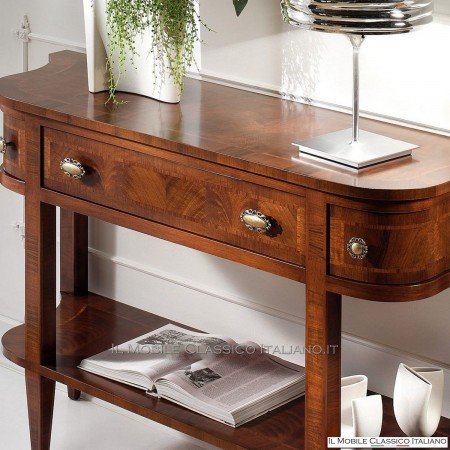 Price €784.27Classic walnut console with 1 drawer. Handcrafted with precious woods.