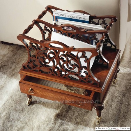Like all the accessories of the De Chirico collection, the low bookcase is characterized by an all-round carving on the band below the top, and by the typical pin-shaped legs, thus making it a unique piece of furniture for furnishing. your home with a refined and refined style.