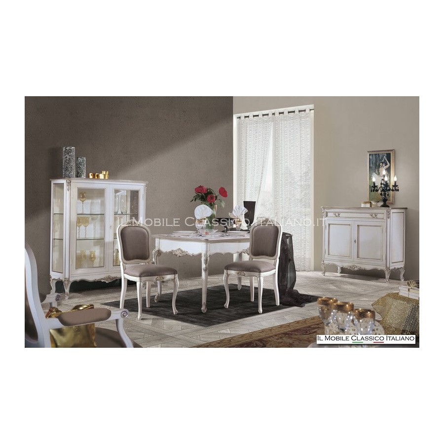 The 700 style sideboard is composed of 1 central drawer 2 doors. The structure is entirely in solid wood and has carvings on the legs and profiles, which in the color as in the photo have been enhanced by the silver leaf. The classic sideboard furniture is able to perfectly combine elegance and functionality in a single solution, the right complement to give a luxurious look to your home.