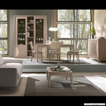 The ash sideboard with engravings is extremely versatile and adapts to different furnishing styles. Ash, with its warm and natural shade, pairs perfectly with modern and traditional interiors. The engravings, made with skill, add a touch of elegance that elevates the aesthetics of the furniture. This sideboard can be used as a centerpiece in a formal dining room or as a functional element in a living room, always offering a perfect balance between beauty and practicality. The ash sideboard with engravings lends itself to various customizations, to be able to fit into multiple environments, the semicircular engravings at the ends of the facade are elements that lend themselves to being finished even in a different color from the rest of the sideboard.