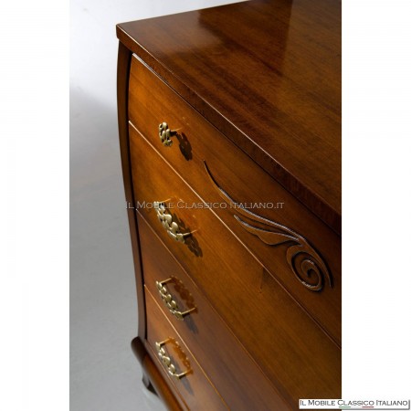 Chest of drawers with 3 drawers with shaped plinth and secret drawer placed on the crosspiece under the top. The Harmony style proposed in this collection combines the modern style with the classic one making it one.