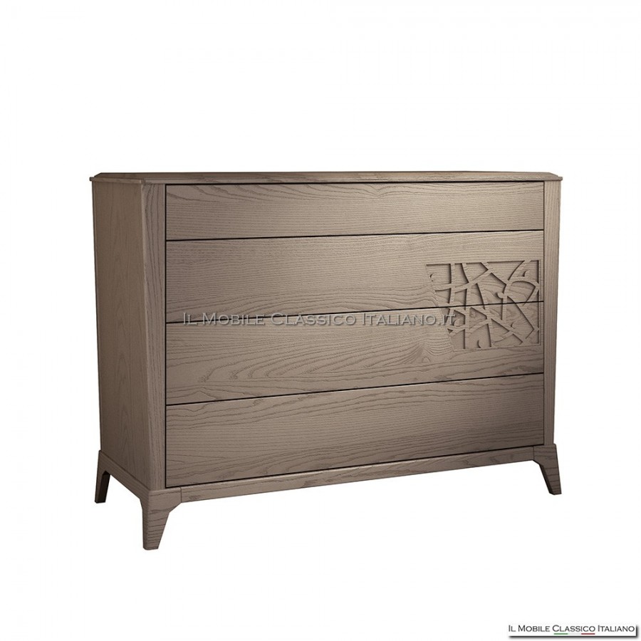 La cómoda moderna en fresno cepillado de la colección Manhattan es un mueble de seguro interés capaz de dar elegancia y estilo a cualquier dormitorio, tanto clásico como moderno. Esta cómoda consta de cuatro cajones con tiradores de madera y calados. Si lo prefieres, tienes disponibles tres variantes: con decoración calada y modernas asas, lisa sin decoración, o con asa pero sin decoración.