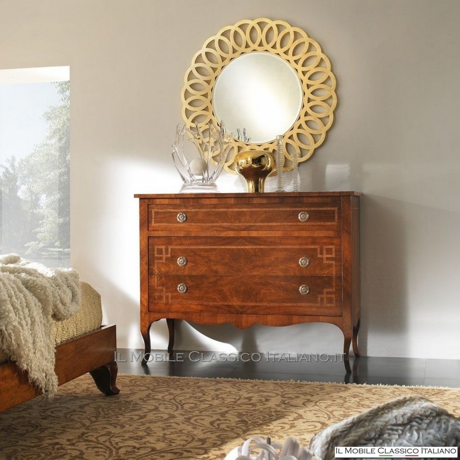 Esta cómoda de estilo clásico con incrustaciones que permite amueblar las estancias de cualquier hogar con gusto y elegancia, son obras únicas realizadas con técnicas ancestrales que transmiten la maestría del pasado a nuestros días.