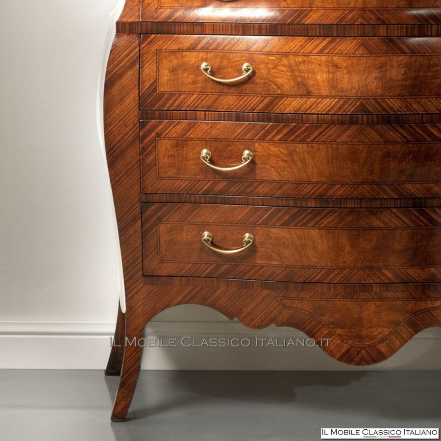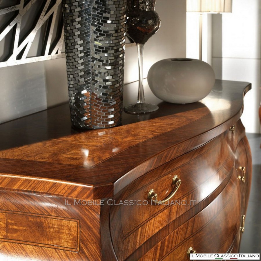 Esta cómoda de madera de fresno , como todos los elementos de la colección Dolce casa , es una colección de muebles de varios estilos para completar armoniosamente tu decoración y crear un ambiente cálido y acogedor. La característica principal de estos muebles clásicos es la complejidad de la construcción, de hecho muchos de estos muebles son redondeados, moldeados o tallados. Tienen laterales realizados con paneles curvos en una o dos direcciones. Las incrustaciones se aplican en las superficies, hechas de esencias raras y preciosas como nuez nacional, pluma de nuez, bois de rose, palisandro, arce, olivo, bois de violette, zebrano o fresno, roble, nuez, mirto, nuez persa, olivo árbol. El procesamiento de estos muebles clásicos requiere una gran habilidad y experiencia.