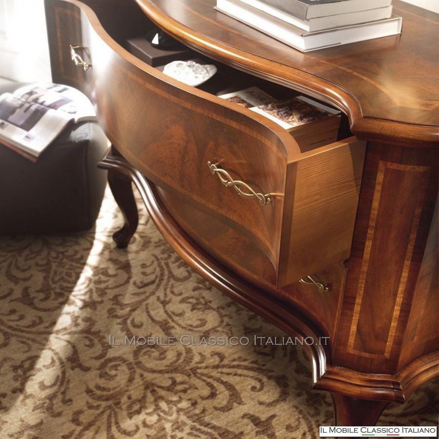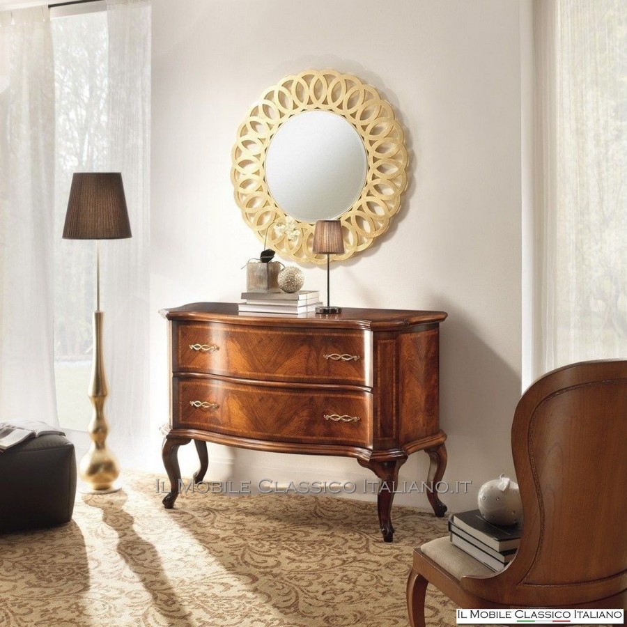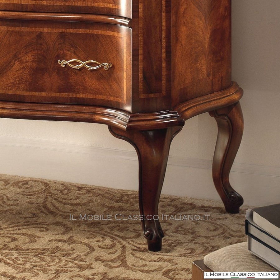 Esta cómoda redondeada , como todos los elementos de la colección Dolce casa , es una colección de muebles de varios estilos para completar con armonía tu decoración y crear un ambiente cálido y acogedor. La característica principal de estos muebles clásicos es la complejidad de la construcción, de hecho muchos de estos muebles son redondeados, moldeados o tallados. Tienen laterales realizados con paneles curvos en una o dos direcciones. Las incrustaciones se aplican en las superficies, hechas de esencias raras y preciosas como nuez nacional, pluma de nuez, bois de rose, palisandro, arce, olivo, bois de violette, zebrano o fresno, roble, nuez, mirto, nuez persa, olivo árbol. El procesamiento de estos muebles clásicos requiere una gran habilidad y experiencia.