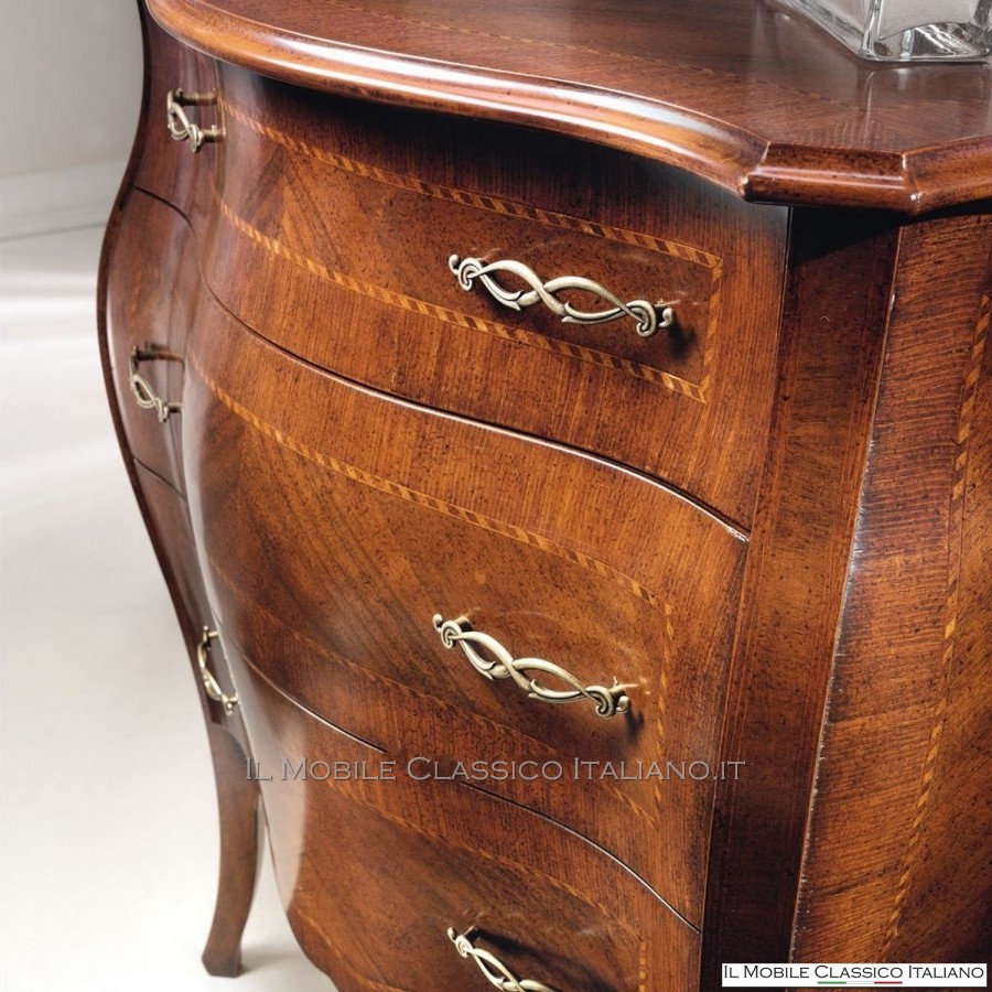 Esta cómoda redonda , como todos los elementos de la colección Dolce casa , es una colección de muebles de varios estilos para completar armónicamente tu decoración y crear un ambiente cálido y acogedor. La característica principal de estos muebles clásicos es la complejidad de la construcción, de hecho muchos de estos muebles son redondeados, moldeados o tallados. Tienen laterales realizados con paneles curvos en una o dos direcciones. Las incrustaciones se aplican en las superficies, hechas de esencias raras y preciosas como nuez nacional, pluma de nuez, bois de rose, palisandro, arce, olivo, bois de violette, zebrano o fresno, roble, nuez, mirto, nuez persa, olivo árbol. El procesamiento de estos muebles clásicos requiere una gran habilidad y experiencia.
