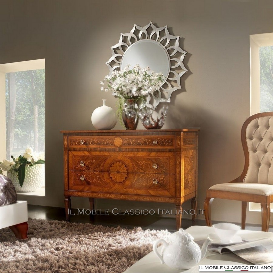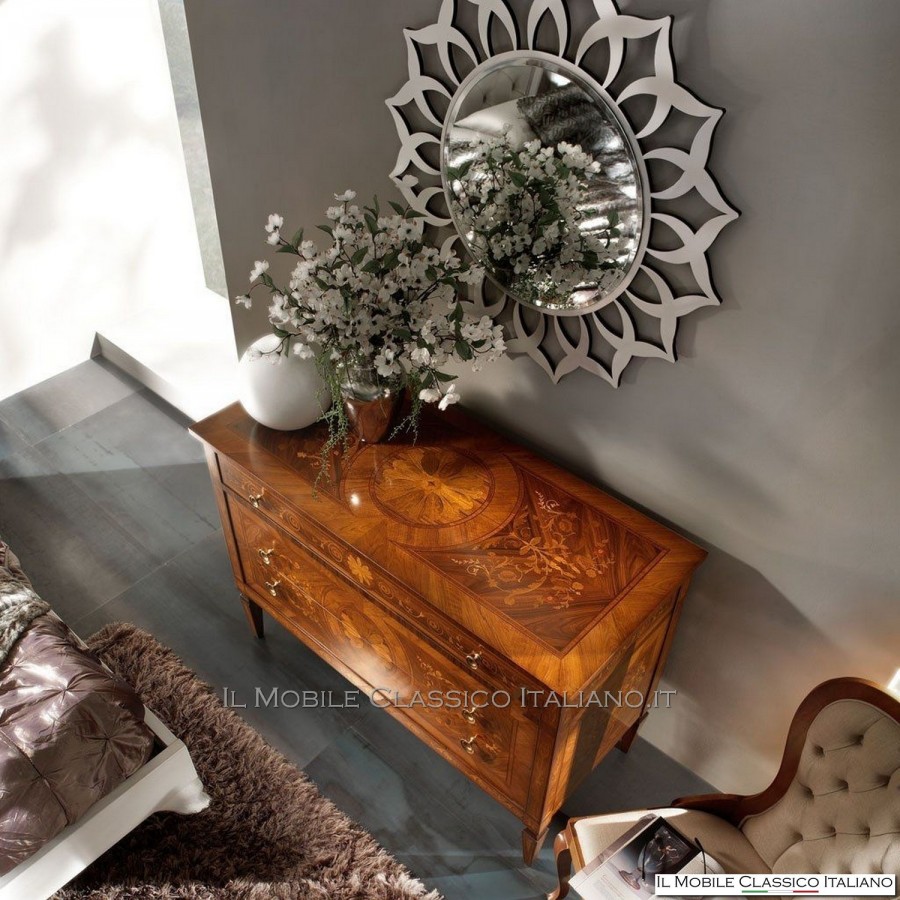 Esta cómoda Maggiolini de estilo clásico que te permite amueblar las habitaciones de cualquier hogar con gusto y elegancia está inspirada en el maestro ebanista Maggiolini, son obras únicas realizadas con técnicas antiguas que transmiten la maestría del pasado a nuestros días.