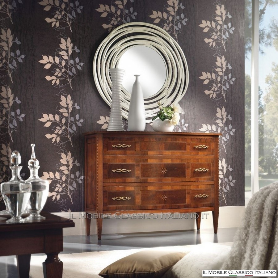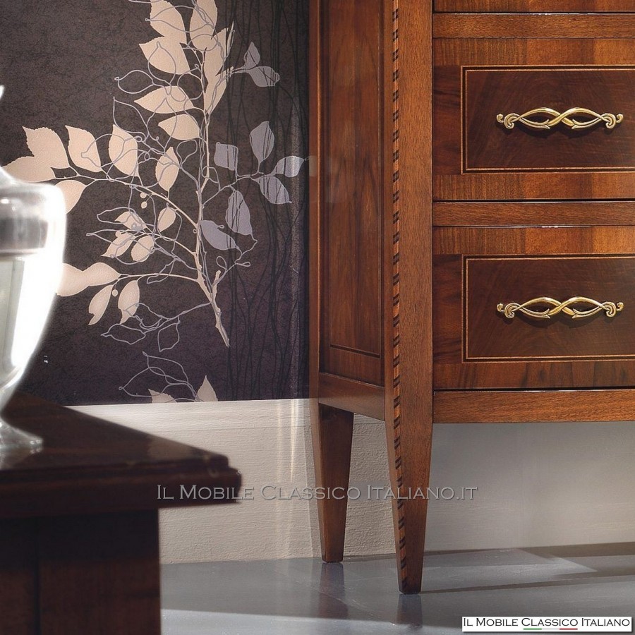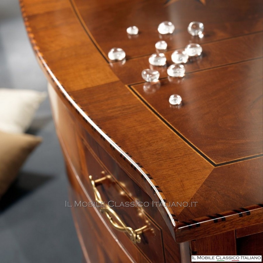 Esta cómoda con formas , como todos los elementos de la colección Dolce casa , es una colección de muebles de varios estilos para completar armónicamente tu decoración y crear un ambiente cálido y acogedor. La característica principal de estos muebles clásicos es la complejidad de la construcción, de hecho muchos de estos muebles son redondeados, moldeados o tallados. Tienen laterales realizados con paneles curvos en una o dos direcciones. Las incrustaciones se aplican en las superficies, hechas de esencias raras y preciosas como nuez nacional, pluma de nuez, bois de rose, palisandro, arce, olivo, bois de violette, zebrano o fresno, roble, nuez, mirto, nuez persa, olivo árbol. El procesamiento de estos muebles clásicos requiere una gran habilidad y experiencia.