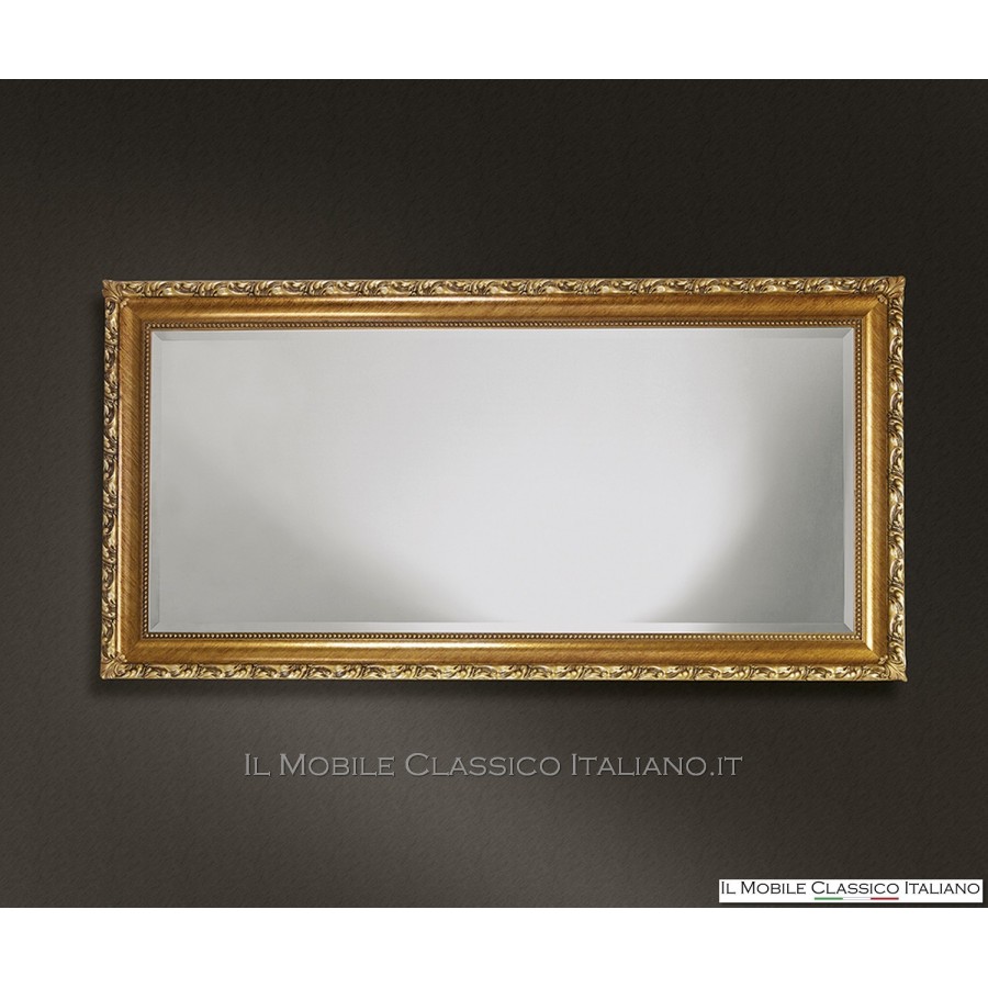 Este espejo horizontal es un mueble muy adecuado para espacios amplios y no solo porque también se puede colocar en vertical. Su marco tallado en pan de oro y, alternativamente, lacado es un modelo elegante. Hay muchos lugares donde puedes colocarlo, desde la pared de la entrada hasta la pared del dormitorio o el baño, solo queda que encuentres el lugar más adecuado.