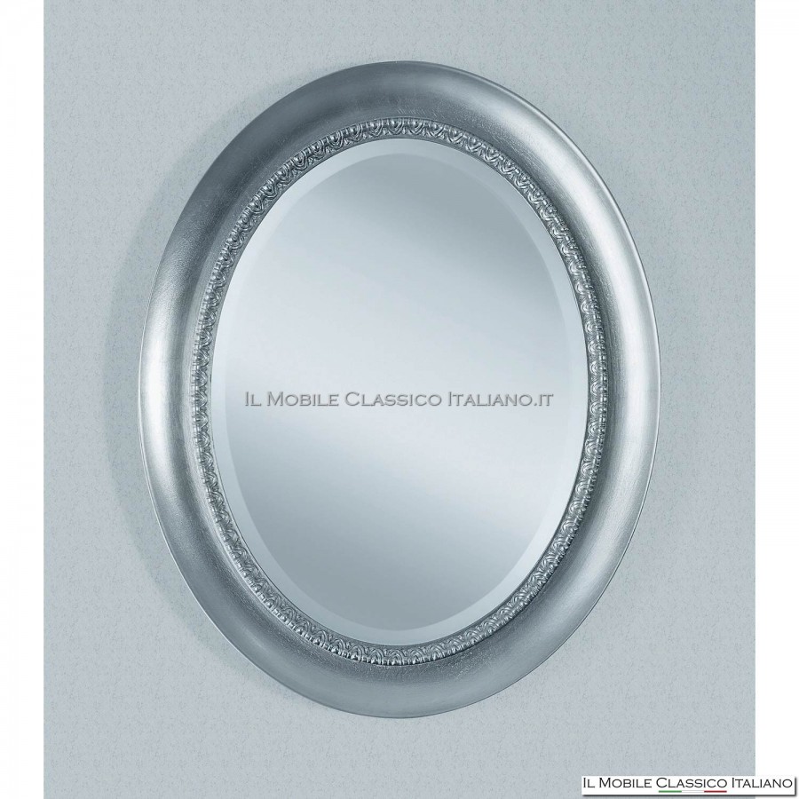 Espejo ovalado con tallas de movimiento ondulado a lo largo del borde del espejo.
