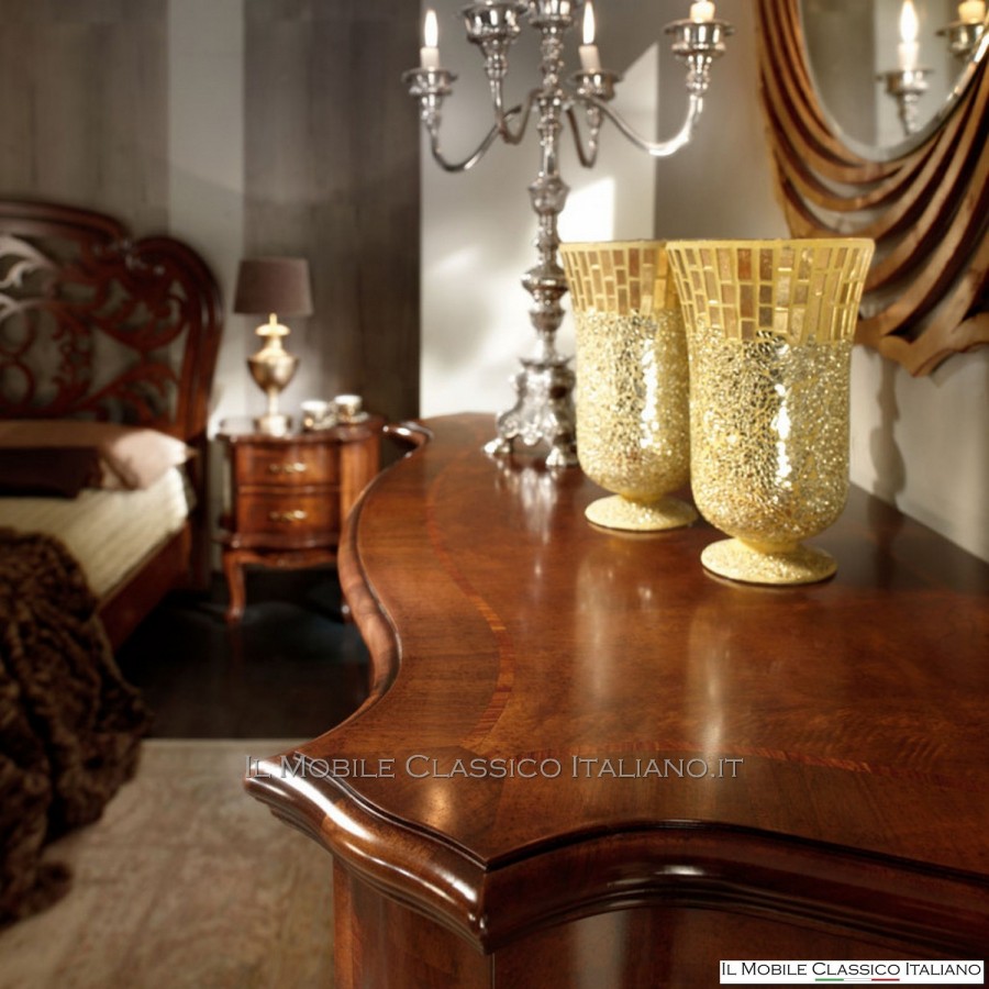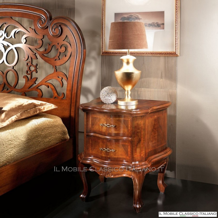 Esta mesita de noche de nogal perfilado , como todos los elementos de la colección Dolce casa , es una colección de muebles de varios estilos para completar armónicamente tu decoración y crear un ambiente cálido y acogedor. La característica principal de estos muebles clásicos es la complejidad de la construcción, de hecho muchos de estos muebles son redondeados, moldeados o tallados. Tienen laterales realizados con paneles curvos en una o dos direcciones. Las incrustaciones se aplican en las superficies, hechas de esencias raras y preciosas como nuez nacional, pluma de nuez, bois de rose, palisandro, arce, olivo, bois de violette, zebrano o fresno, roble, nuez, mirto, nuez persa, olivo árbol. El procesamiento de estos muebles clásicos requiere una gran habilidad y experiencia.