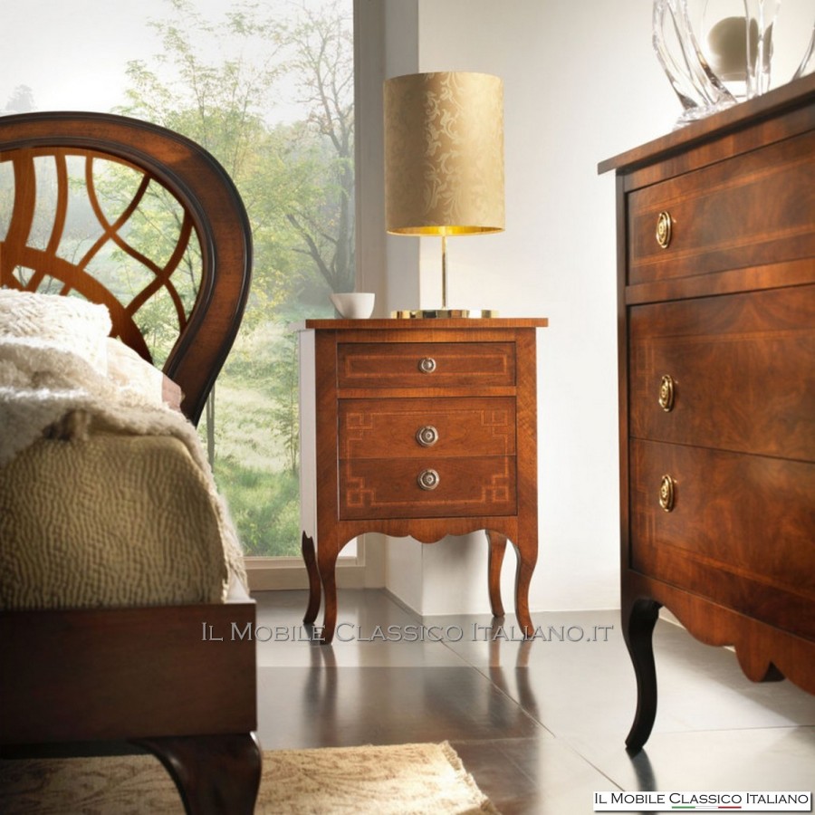 Esta mesita de noche con taracea , como todos los elementos de la colección Dolce casa , es una colección de muebles de varios estilos para completar armónicamente tu decoración y crear un ambiente cálido y acogedor. La característica principal de estos muebles clásicos es la complejidad de la construcción, de hecho muchos de estos muebles son redondeados, moldeados o tallados. Tienen laterales realizados con paneles curvos en una o dos direcciones. Las incrustaciones se aplican en las superficies, hechas de esencias raras y preciosas como nuez nacional, pluma de nuez, bois de rose, palisandro, arce, olivo, bois de violette, zebrano o fresno, roble, nuez, mirto, nuez persa, olivo árbol. El procesamiento de estos muebles clásicos requiere una gran habilidad y experiencia.