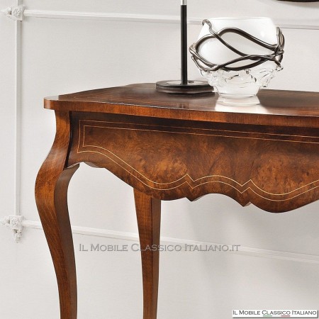 Nuestras consolas clásicas son mesas auxiliares con un sabor ligeramente retro, que combinan la elegancia de un mueble clásico con la funcionalidad de uno contemporáneo. Se pueden utilizar en cualquier rincón de la casa, aunque normalmente se colocan cerca de la entrada, para amueblar mejor tu hogar desde la entrada. Para impresionar a sus invitados, nuestras consolas clásicas le permitirán exhibir y realzar sus objetos decorativos más bellos.