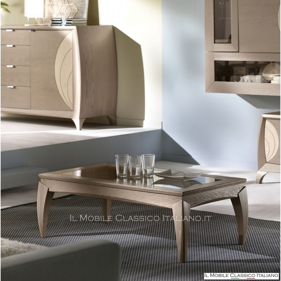 Uno de los aspectos más fascinantes de la mesa de centro rectangular con tapa de cristal es el uso de materiales nobles. El fresno cepillado es una madera conocida por su durabilidad y belleza natural. La técnica del cepillado realza la veta de la madera, dando a la mesa de centro un aspecto único y sofisticado. El contraste entre la cálida textura del fresno cepillado y la superficie lisa y transparente del vidrio crea un equilibrio perfecto entre tradición y modernidad. La tapa de cristal, además de estética, también es práctica y fácil de limpiar, ideal para el uso diario.