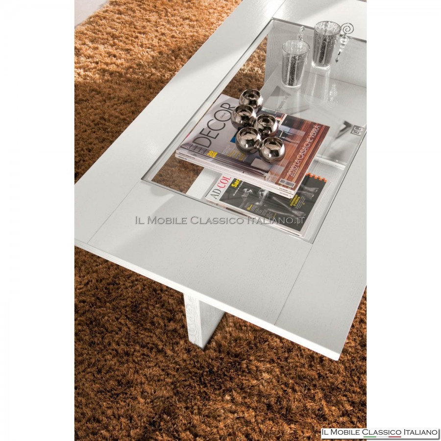 Mesa de centro con tapa de cristal.