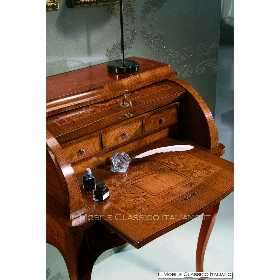 Inlaid Bureau construido por nuestros artesanos en Italia cuidadosamente seleccionando todas las diversas esencias y tratando de revivir la tradición de la construcción de muebles.