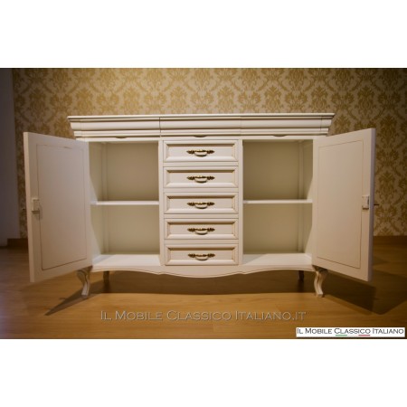 El aparador de madera maciza es una opción elegante y duradera para amueblar tu hogar. El aparador de madera maciza con puertas con incrustaciones de trébol de cuatro hojas y 2 cajones y el característico secreto colocado debajo de la tapa. Gracias a su robustez, el aparador de madera maciza puede durar años y convertirse en un miembro más de la familia. El aparador de madera maciza está disponible en una variedad de diseños y colores.