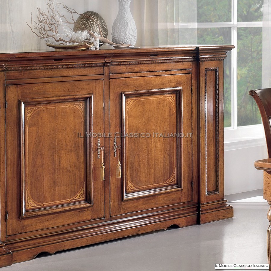 En resumen, el aparador Arte Povera con 2 puertas con incrustaciones de filete, doble cerradura y zócalo perfilado es un mueble versátil y funcional, ideal para quienes buscan una opción de decoración rústica y auténtica para su hogar.