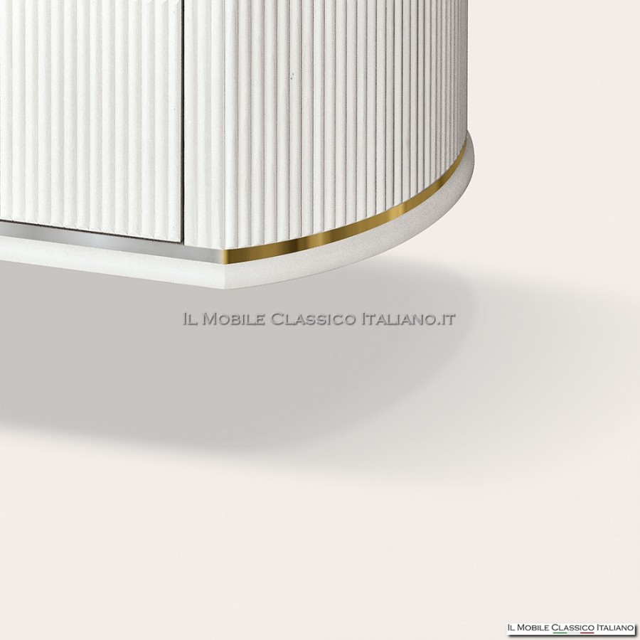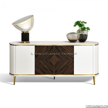 Aparador moderno de 157 cm con puertas acanaladas, acabados personalizables, patas a elección y detalles artesanales Made in Italy. Elegancia y funcionalidad a medida.