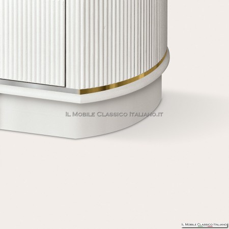 El mueble es además personalizable con ribetes decorativos disponibles en oro o plata, y en el color de la estructura bajo pedido. La apertura push-pull sin tiradores resalta su diseño limpio y lineal.