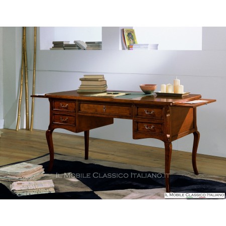 Precio 1.669,50 €Escritorio clásico en nogal, con forma de 1 gran cajón central y 4 cajones laterales