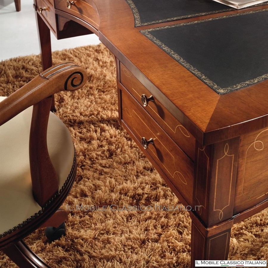 Este escritorio crescent , como todos los elementos de la colección Dolce casa , es una colección de muebles de varios estilos para completar armónicamente tu decoración y crear un ambiente cálido y acogedor. La característica principal de estos muebles clásicos es la complejidad de la construcción, de hecho muchos de estos muebles son redondeados, moldeados o tallados. Tienen laterales realizados con paneles curvos en una o dos direcciones. Las incrustaciones se aplican en las superficies, hechas de esencias raras y preciosas como nuez nacional, pluma de nuez, bois de rose, palisandro, arce, olivo, bois de violette, zebrano o fresno, roble, nuez, mirto, nuez persa, olivo árbol. El procesamiento de estos muebles clásicos requiere una gran habilidad y experiencia.