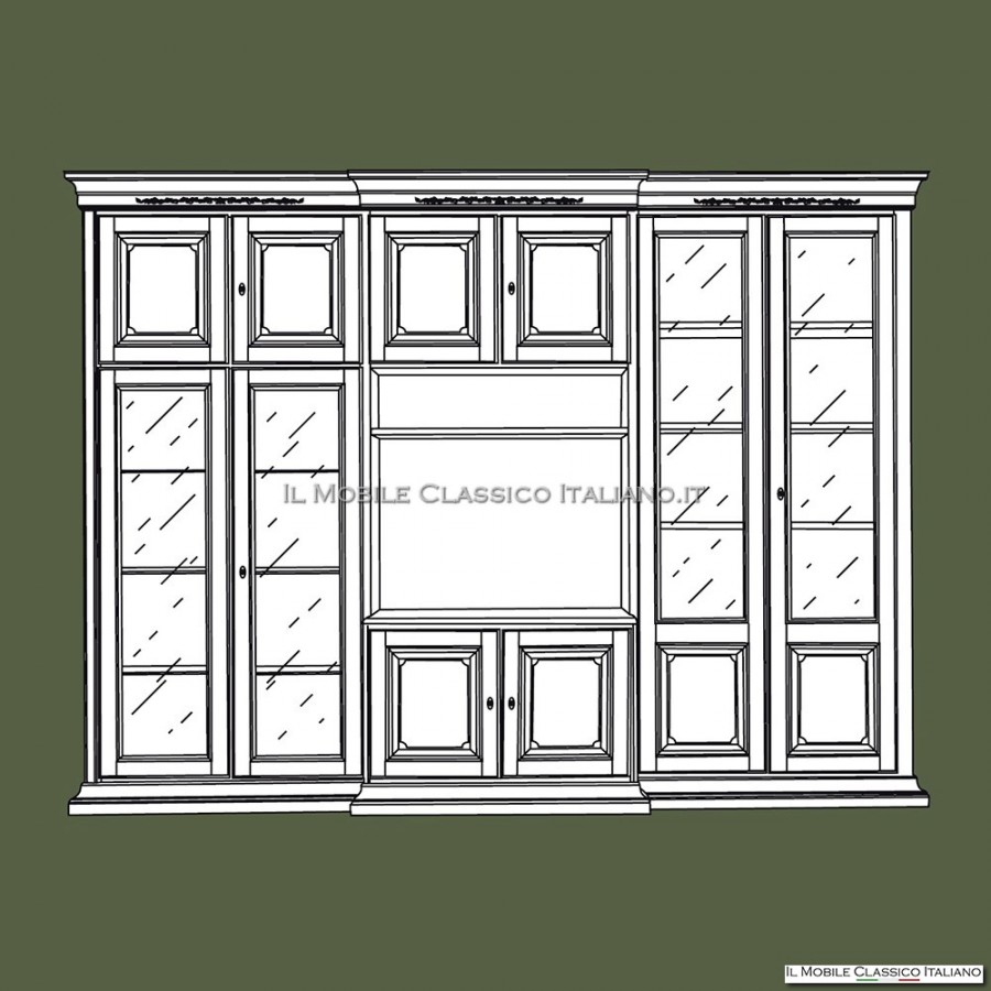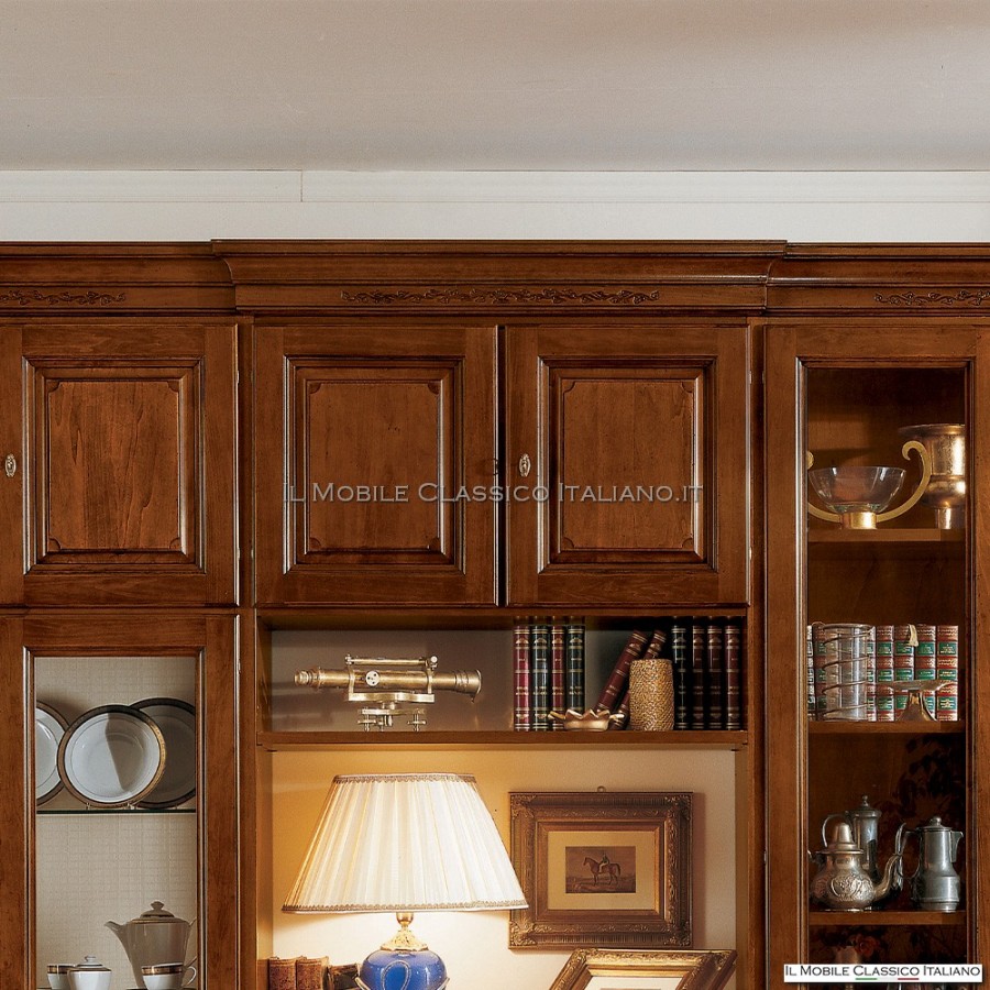 El clásico sistema de pared con talla Edera es ideal para quien busca un ambiente elegante y refinado en su salón. Este mueble de alta calidad, fabricado en madera de nogal Tanganica, destaca por su estilo clásico y arte pobre, que evoca una sensación de calidez y tradición.