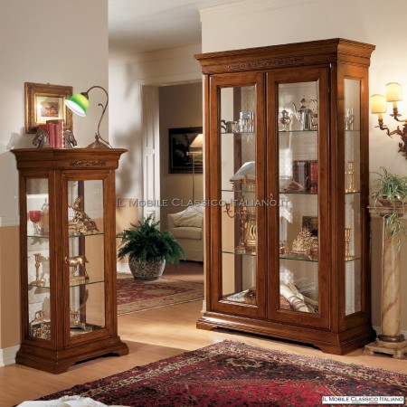 Además de la estética, la funcionalidad es un aspecto fundamental de la cristalería de marquetería clásica . Los estantes de vidrio brindan un espacio ideal para exhibir y organizar artículos preciosos, mientras que las puertas aseguran que todo permanezca seguro y protegido del polvo y los daños. Además, la posibilidad de personalizarla con los acabados propuestos permite adaptar la vitrina a tu gusto y al estilo del mobiliario circundante.