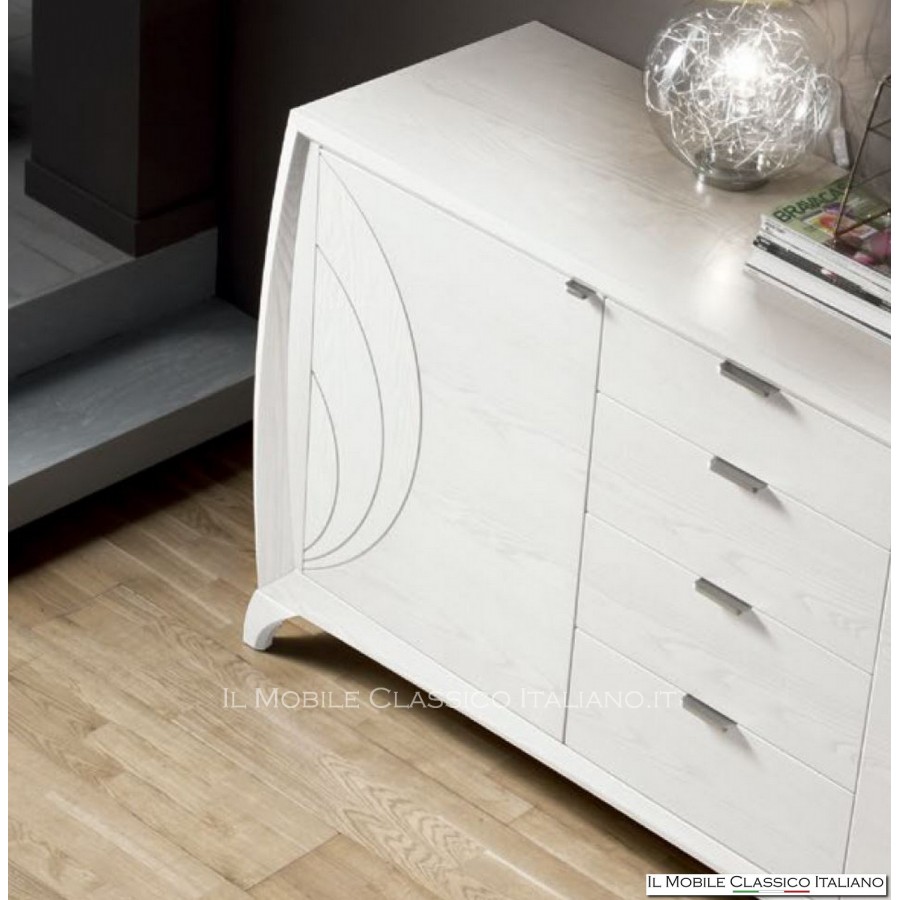 Buffet en frêne blanc 2 portes avec 4 tiroirs gravures