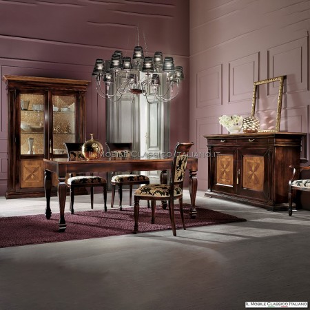 Notre buffet en bois massif présente un design classique avec des portes incrustées de feuilles de trèfle et deux tiroirs sous le dessus, parfaits pour ranger la vaisselle, les sets de table et d'autres articles. De plus, à l'intérieur du buffet, vous trouverez un secret, parfait pour protéger des objets de valeur ou des documents importants. Notre buffet en bois massif est fabriqué à partir de matériaux de haute qualité avec une attention particulière aux détails. L'une des principales caractéristiques de notre buffet en bois massif est la marqueterie de feuilles de trèfle présente sur les portes, qui ajoute une touche d'élégance au design du buffet.