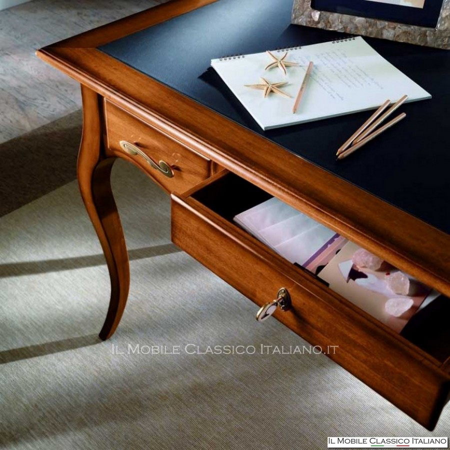 Bureau avec dessus en cuir construit par nos artisans en Italie en sélectionnant soigneusement toutes les différentes essences et en essayant de faire revivre la tradition de la construction de meubles.