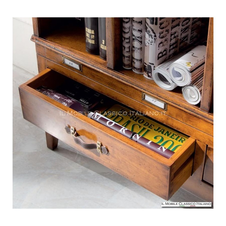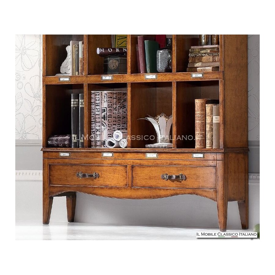 Ce meuble bibliothèque en bois vous permet de compléter avec élégance le mobilier classique ou contemporain de votre espace de vie, c'est un meuble artisanal unique réalisé avec des techniques anciennes qui transmettent la maîtrise du passé à nos jours.