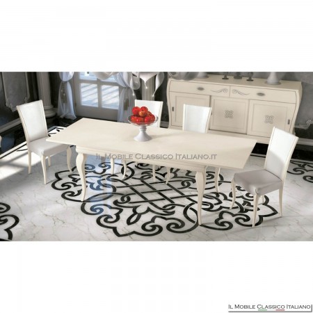Notre proposition pour votre salle à manger de style Shabby Chic avec une table pliante carrée aux pieds façonnés et gravés pourrait être le choix parfait pour vous. Ce type de table a un design classique et polyvalent, qui s'adapte à de nombreux types de meubles, et en même temps se marie parfaitement avec le style Shabby Chic grâce aux détails romantiques et délicats. La table de salle à manger shabby chic proposée dans cette finition donne l'impression d'une pièce vintage pour une touche d'authenticité et de caractère.