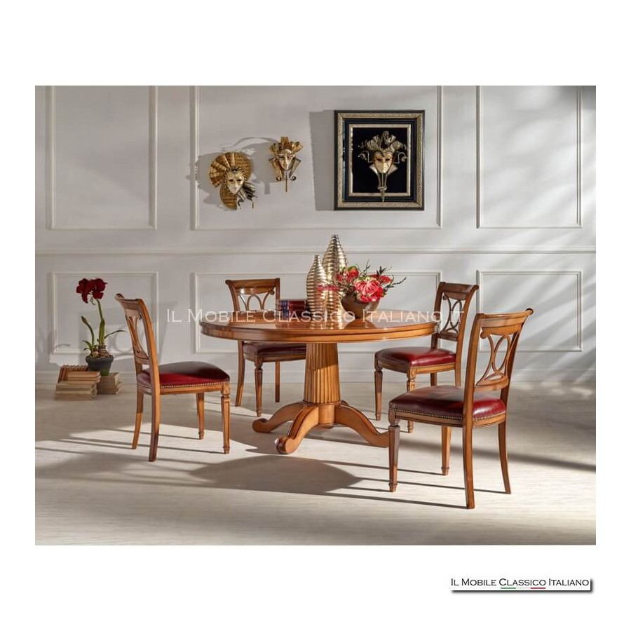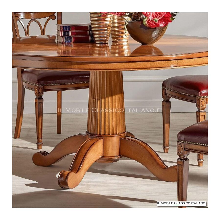 Ce type de table ronde a une taille fixe, non extensible, elle est fabriquée à la main par nos artisans en Italie.