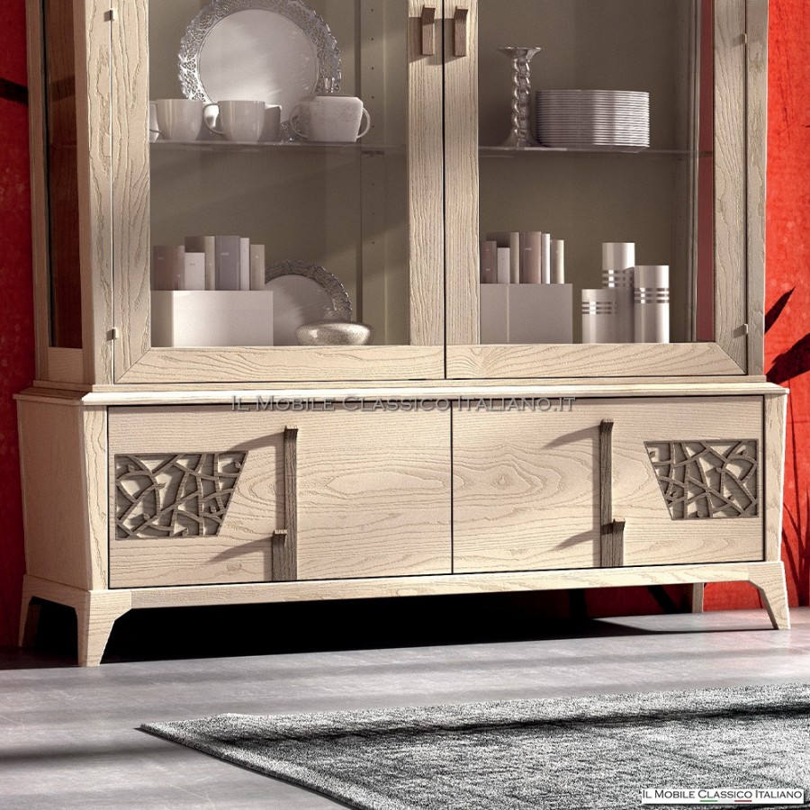 Si vous aimez la version décorée, le chantournage et les poignées en bois donnent à ce meuble un aspect unique et original, le rendant parfait pour embellir des environnements modernes et élégants.