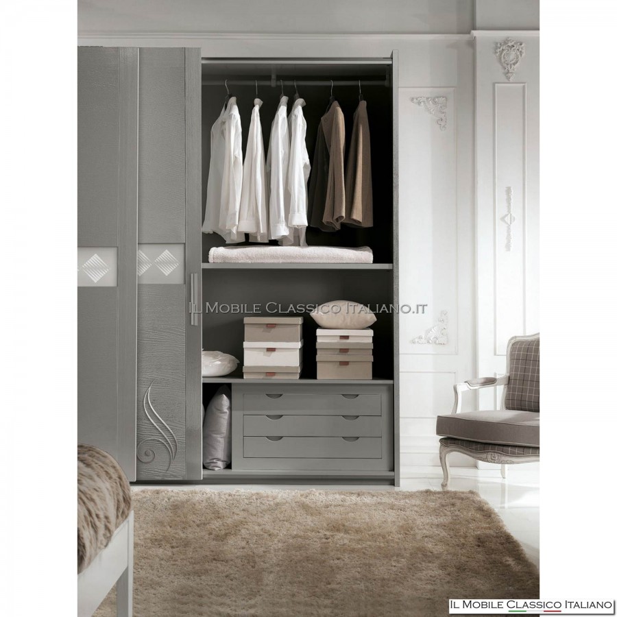 Les armoires de la collection Gisellè sont toutes composées de portes coulissantes , et disposent d'une commode interne , d'étagères et de tringles à vêtements . Les différentes armoires de la collection Gisellè se distinguent par les portes coulissantes en miroir ou avec des inserts en verre satiné plutôt qu'en bois ou par la présence de la décoration. La taille et la forme de ces armoires s'adaptent aux besoins d' ameublement actuels et en font donc un exemple typique de mobilier classique contemporain .