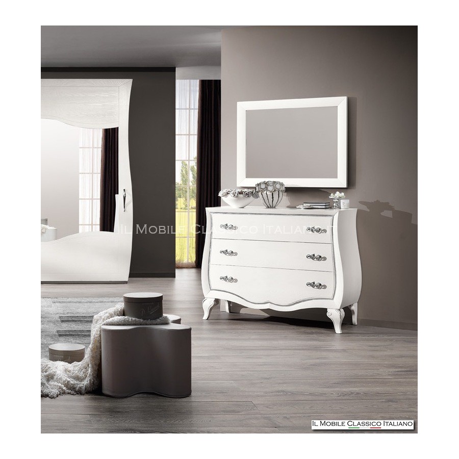 Cette commode en frêne à 3 tiroirs est un meuble moderne, avec les lignes arrondies des côtés et les sculptures sur les pieds , parfait pour ceux qui recherchent des solutions d'ameublement modernes et raffinées.