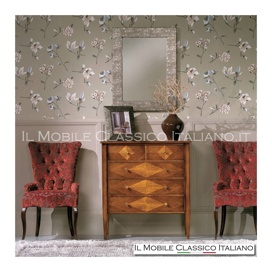 Le Comoncino incrusté est construit par nos artisans en Italie en sélectionnant soigneusement toutes les différentes essences et en essayant de faire revivre la tradition de la fabrication de meubles.