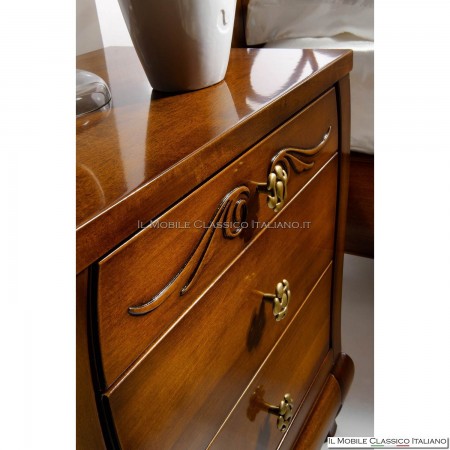 Cette table de chevet napolitaine , comme tous les éléments de la collection Dolce casa , est une collection de meubles de styles variés pour compléter harmonieusement votre décoration et créer une ambiance chaleureuse et accueillante. La principale caractéristique de ces meubles classiques est la complexité de la construction, en effet beaucoup de ces meubles sont arrondis, façonnés ou sculptés. Ils ont des côtés faits de panneaux incurvés dans une ou deux directions. Des incrustations sont appliquées sur les surfaces, faites d'essences rares et précieuses telles que noyer national, plume de noyer, bois de rose, palissandre, érable, olivier, bois de violette, loupe de zebrano ou de frêne, chêne, noyer, myrte, noyer persan, olivier arbre. Le traitement de ces meubles classiques nécessite une grande compétence et expérience.