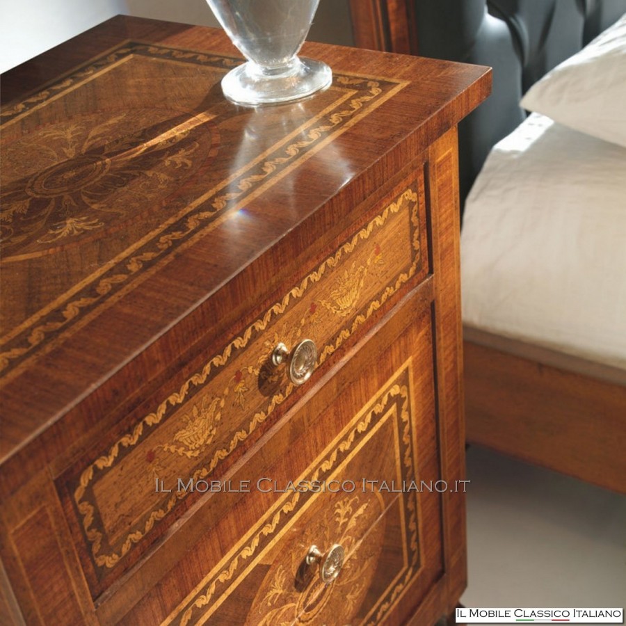 Les tables de chevet marquetées Maggiolini se caractérisent par des formes simples, capables de combiner parfaitement élégance et fonctionnalité dans une seule solution, car elles peuvent être utilisées pour ranger des vêtements et des objets personnels, mais aussi pour placer une lampe ou simplement pour certains de vos objets décoratifs.
