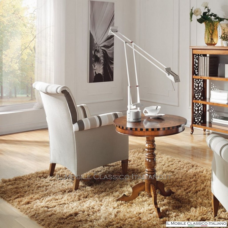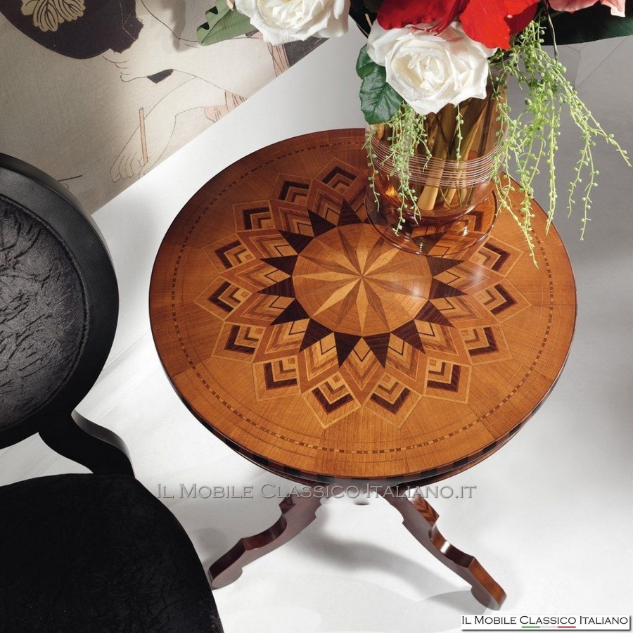 Il Tavolino rotondo classico con filetti e decoro può essere collocato nella parte della propria abitazione dove si desidera accogliere al meglio i propri ospiti.