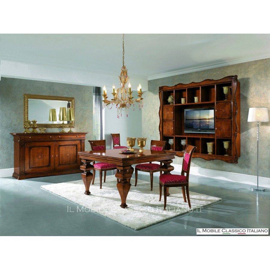 La Credenza in legno è proposta nella classica colorazione tipo noce, con una leggera patinatura più scura che va ad esaltarne i vari profili. Complemento ideale di un salotto in stile classico contemporaneo, o con delle colorazioni adeguate anche in contesti più moderni.