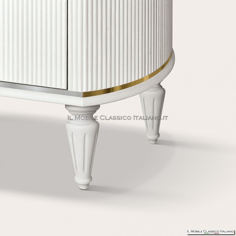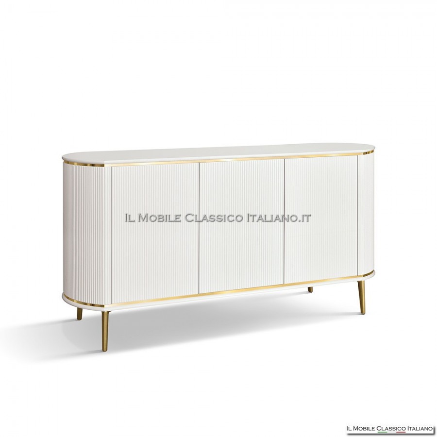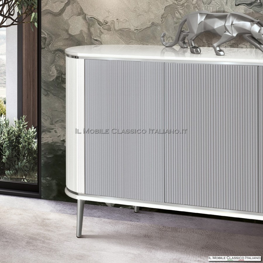 Credenza moderna da 157 cm con ante cannettate, finiture personalizzabili, piedi a scelta e dettagli artigianali Made in Italy. Eleganza e funzionalità su misura.