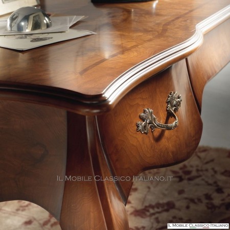 Prezzo 2.203,95 €Scrivania stile classico intagliata con 4 cassetti. LAVORAZIONE ARTiGIANALE e LEGNI PREGIATI